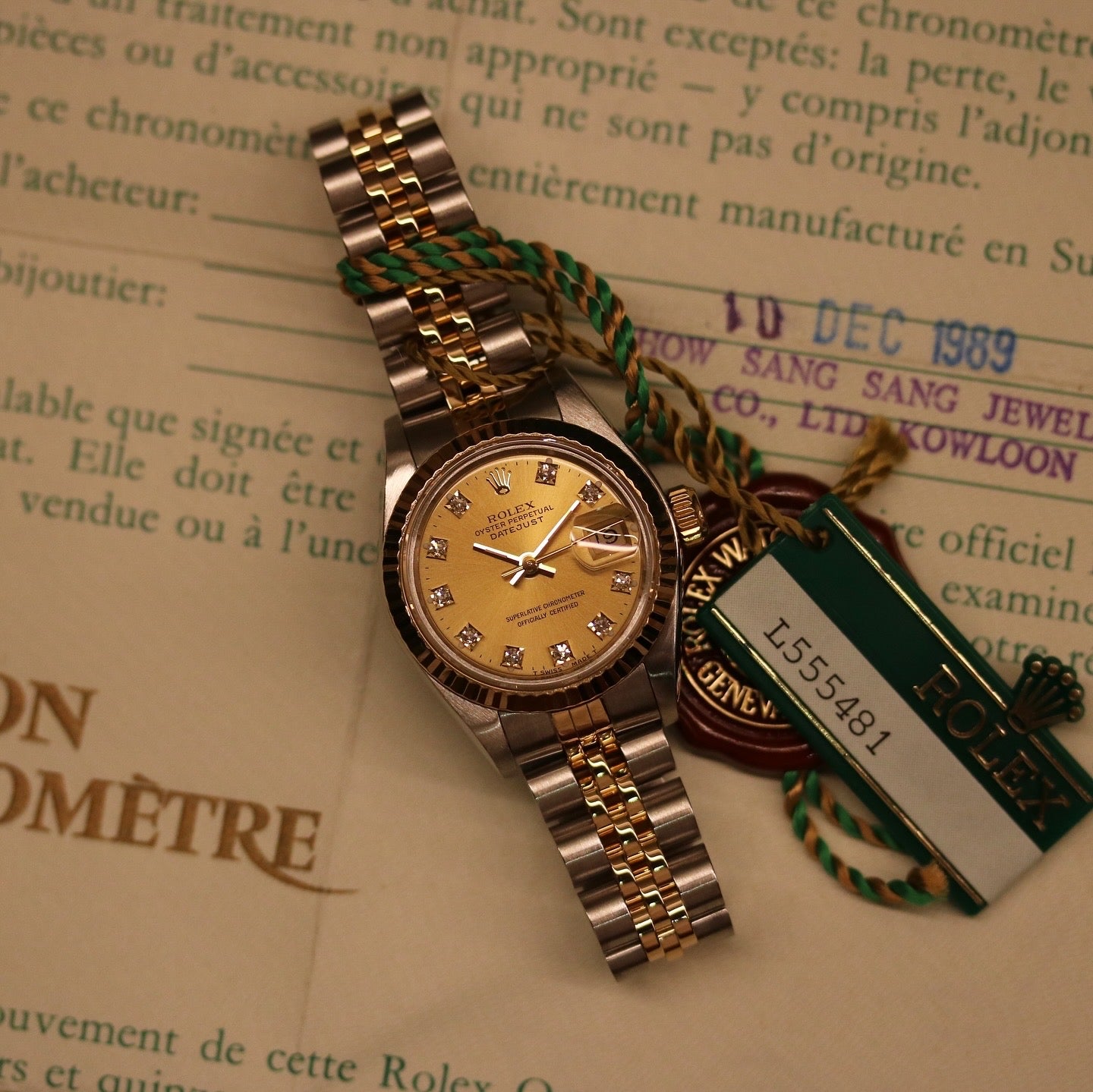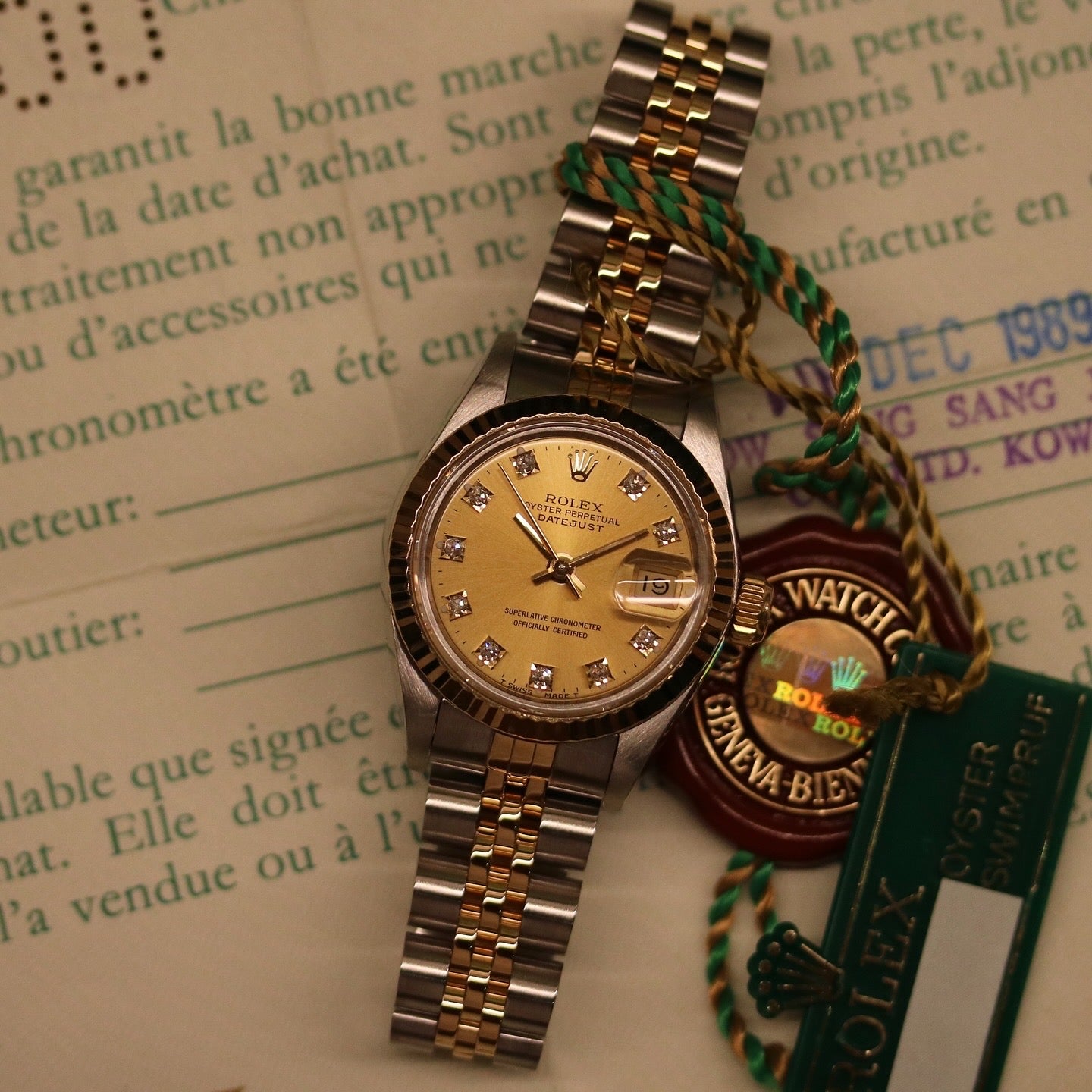 Tillbehör: original certifikat från (Hong Kong 1989) samt låda, booklets, tags.